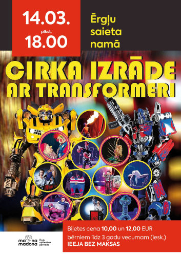 17. janvāris 14:00 - 31. marts 17:00Annas Simtnieces izstāde “Būt ar sevi”20. janvāris 09:00 - 20. marts 17:00Līgas Klusas gleznu izstāde “Dabas pieskāriens krāsās " Kraukļos27. janvāris 10:00 - 13. marts 18:00“Es karājos tavā bizē, tava bize man simpatizē…” Sandras Valaines austo spilvenu izstāde2. februāris 10:00 - 31. marts 17:00Izstāde "Manas zemē iesētās dienas" 3. februāris 10:00 - 30. aprīlis 17:00“Barkava manās atmiņās” 5. februāris 09:00 - 31. marts 17:00Izstāde "Labo domu valdziņi" Sauleskalnā16. februāris 10:00 - 16. marts 18:00Guntas Sanderes fotogrāfiju izstāde “Klusuma horizonti”10. marts 14:00 - 15:23Kinoseanss ''Supersuns Čārlijs''10. marts 16:00 - 17:40Kinoseanss ''Goat:Labākais pasaulē''