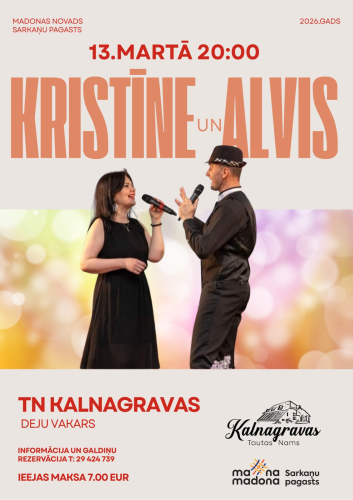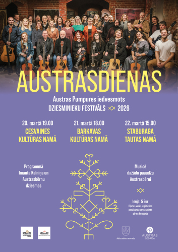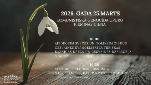17. janvāris 14:00 - 31. marts 17:00Annas Simtnieces izstāde “Būt ar sevi”2. februāris 10:00 - 31. marts 17:00Izstāde "Manas zemē iesētās dienas" 3. februāris 10:00 - 30. aprīlis 17:00“Barkava manās atmiņās” 5. februāris 09:00 - 31. marts 17:00Izstāde "Labo domu valdziņi" Sauleskalnā20. marts 19:00 - 22. marts 18:00Dziesminieku festivāls “Austrasdienas 2026” Madonas novadā21. marts 17:00 - 22. marts 01:00"Kori sadzied Ērgļos -2026"