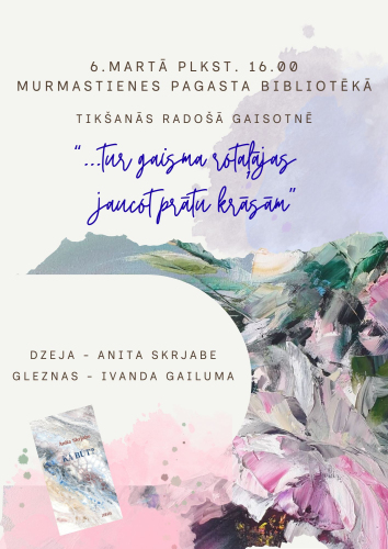 17. janvāris 14:00 - 31. marts 17:00Annas Simtnieces izstāde “Būt ar sevi”20. janvāris 09:00 - 20. marts 17:00Līgas Klusas gleznu izstāde “Dabas pieskāriens krāsās " Kraukļos2. februāris 10:00 - 31. marts 17:00Izstāde "Manas zemē iesētās dienas" 3. februāris 10:00 - 30. aprīlis 17:00“Barkava manās atmiņās” 5. februāris 09:00 - 31. marts 17:00Izstāde "Labo domu valdziņi" Sauleskalnā18. marts 18:00 - 19:00Leļļu izrāde bērniem “Robotiņš MI - kurš visu dara citu vietā!"
