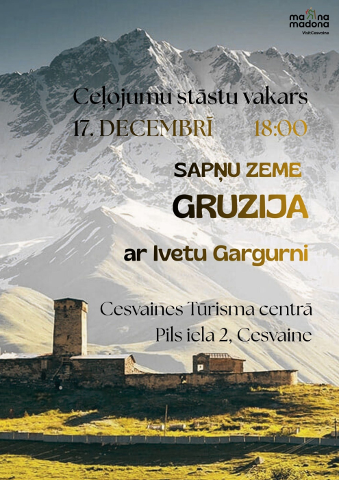 17.decembrī - ceļojumu stāstu vakars Cesvainē "Gruzija".