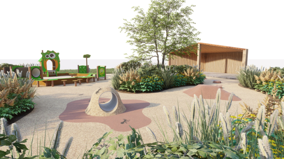 - mūzikas dārza zona ar interaktīviem paneļiem un mūzikas instrumentiem;
