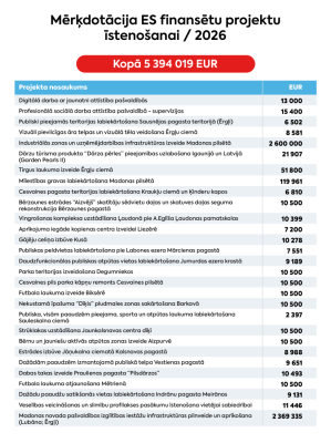 Madonas novada pašvaldības dome ir pieņēmusi 2026. gada budžetu, kas ir pirmais kopīgais finanšu plāns pēc apvienošanās ar Varakļānu novadu aizvadītajā vasarā. Šī gada prioritātes ir - mērķtiecīgas investīcijas attīstības projektos, plaša sociālā atbalsta paka iedzīvotājiem, dažādi pasākumi un aktivitātes visā plašajā novada teritorijā.
