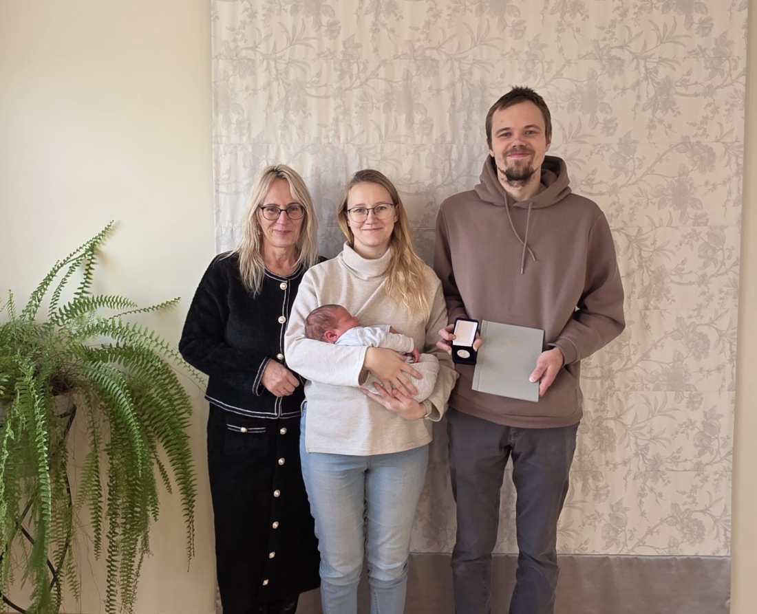 Līdz 20. janvārim reģistrēti četri šajā gadā un Madonas novadā dzimuši mazulīši. Viena no pirmajām monētām “Dzimis Madonas simtgadē” jau nonākusi pie sava īpašnieka - Emīla Vaniņa (dz.13.01.2026). Viņa vecāki - Lauris Vaniņš un Līga Gailīte – ir no Cesvaines pagasta, un mājās Emīlu nepacietīgi gaida arī četrus gadus vecs brālītis Markus.