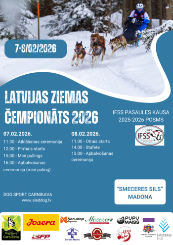 2026. gada 7 - 8. februārī, SAB "Smeceres sils" sporta bāzē ar atklāšanas ceremoniju 07. 02. 2026, plkst. 11. 30, sāksies IFSS Pasaules kausa 2025 - 2026 gada sezonas posms suņu kamanu sacensībām.