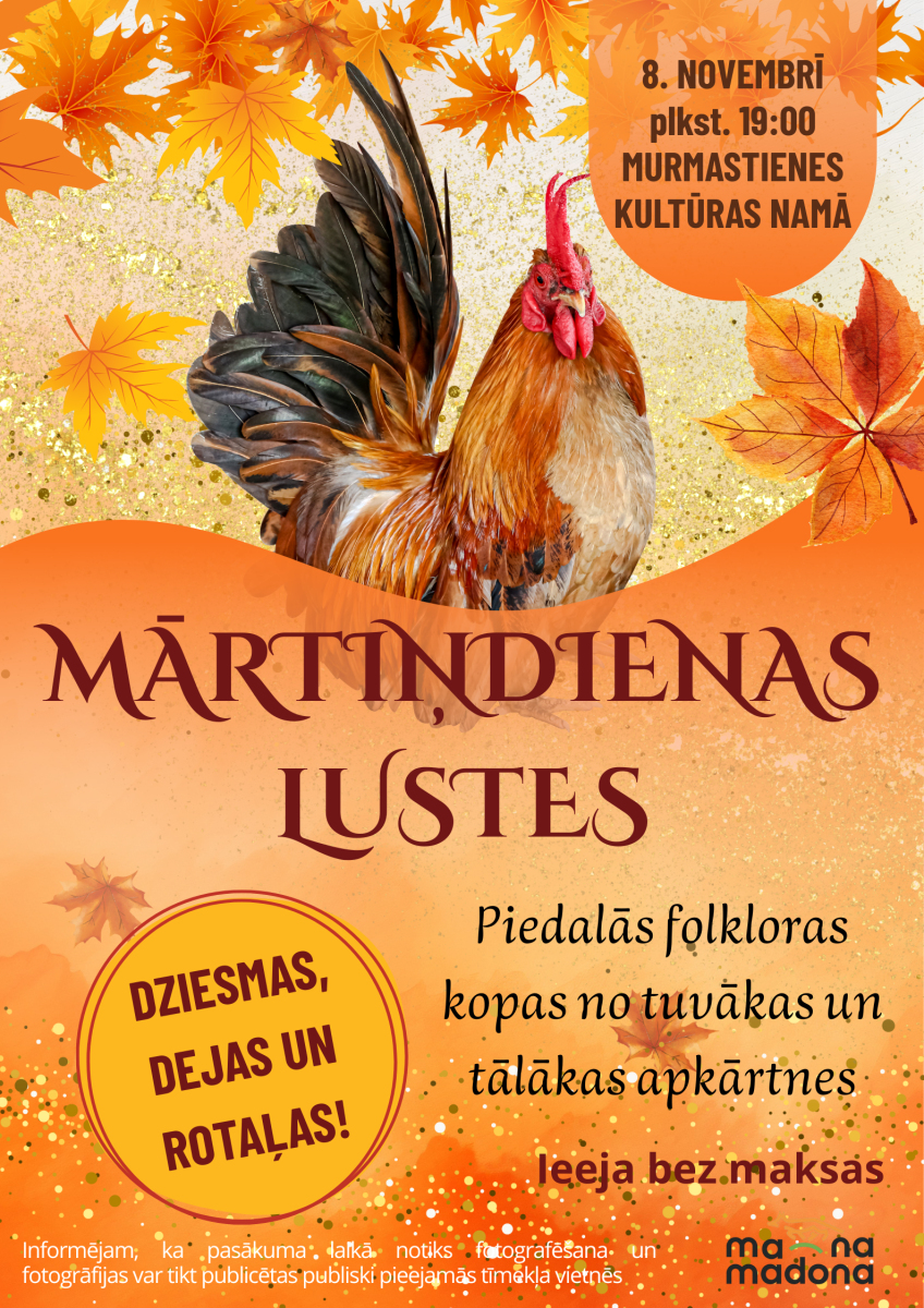 Tuvākus un tālākus draugus uz Mārtiņdienas lustēm aicina Murmastienes kultūras nama folkloras kopa “Rota”. Tiek dziedātas dziesmas un iets rotaļās, pasākumā piedalās gan lieli, gan mazi. Rotaļās tiek iesaistīti arī skatītāji. Pēc pasākuma kā tradīcija jau gadu no gada ir cienāšanās ar biezputru.