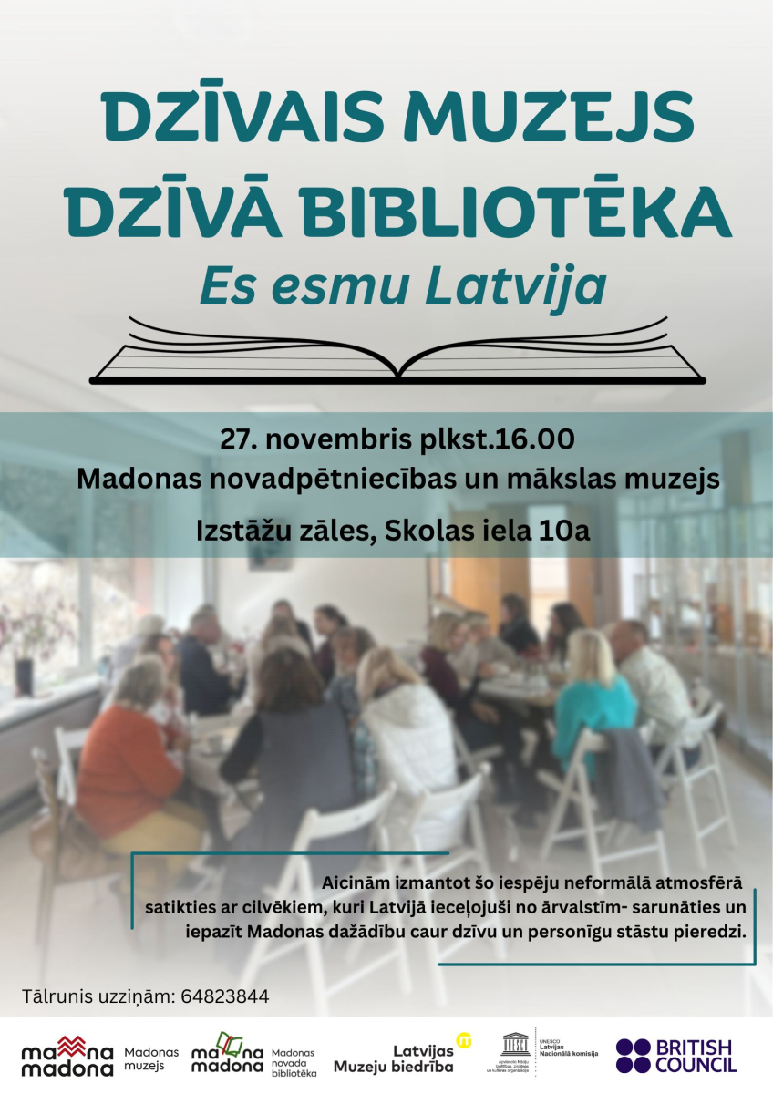 Pasākums “Dzīvais muzejs. Dzīvā bibliotēka” ir daļa no UNESCO Līdzdalības programmas projekta “Muzeji un bibliotēkas mieram un izturētspējai” (Fostering peaceful and resilient communities through museums and libraries) ietvaros un sadarbībā ar British Council pārstāvniecību Latvijā.