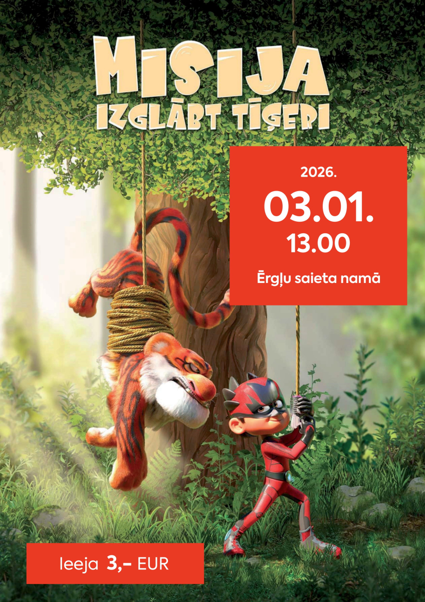 Filmas MISIJA. IZGLĀBT TĪĢERI kinoseanss Ērgļu saieta namā.