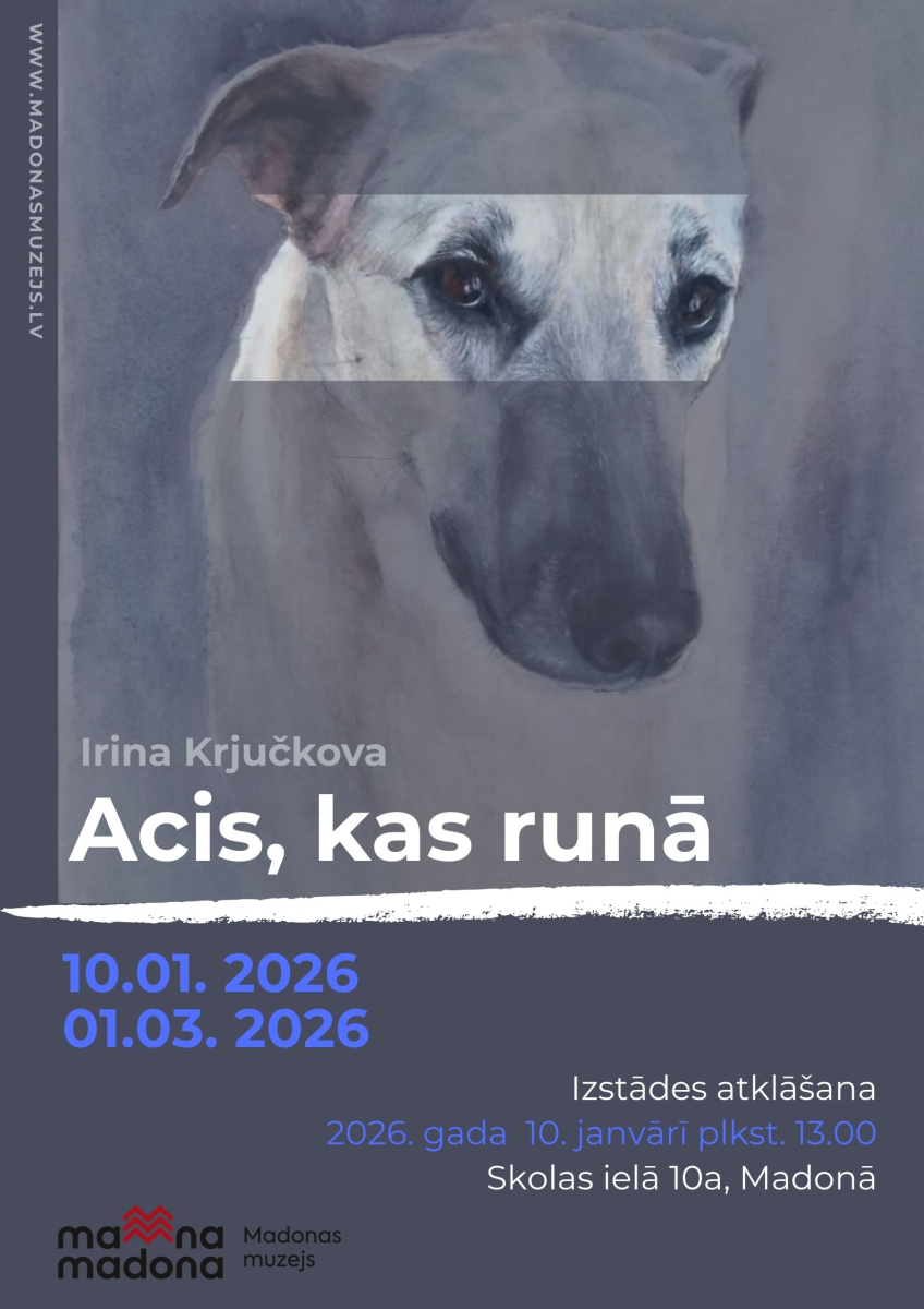 Madonas novadpētniecības un mākslas muzejs aicina uz jaunu un sirsnīgu mākslinieces Irinas Krjučkovas izstādi “Acis, kas runā”, kas no 2026. gada 10. janvāra līdz 1. martam atklās mākslinieces neparasto spēju ieraudzīt dzīvnieku dvēseli un pārvērst to gleznās, kurās skatiens kļūst par galveno stāstnieku.