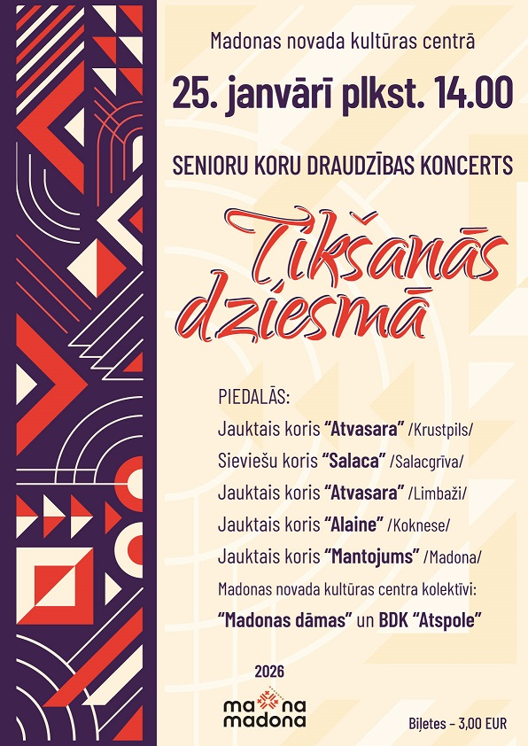 Koncertu kuplinās Madonas novada kultūras centra senioru dāmu deju grupa "Madonas dāmas" un BDK "Atspole" /vadītāja Maija Rijniece/.
