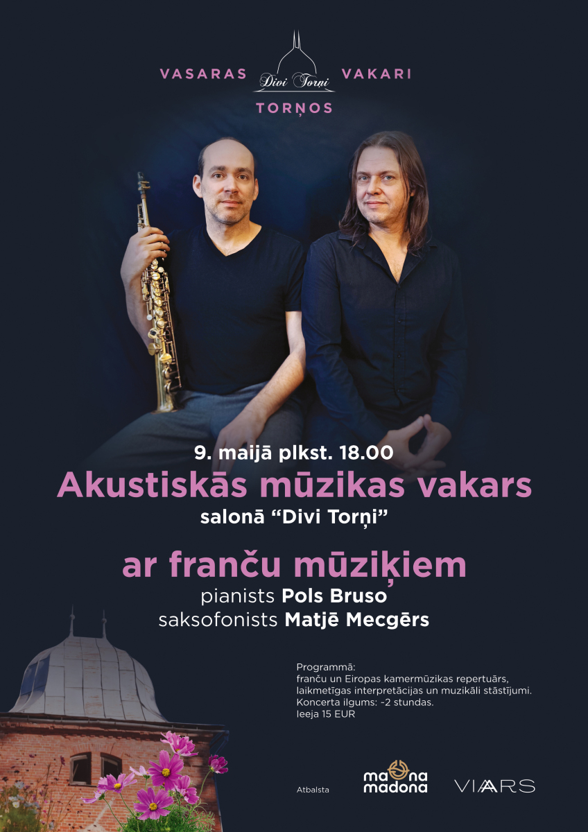 Madonas novadā šovasar ar īpašu notikumu tiek atklāts pašvaldības atbalstītais kultūras projekts “VASARAS VAKARI TORŅOS”. Pirmais koncerts norisināsies Cesvainē, salonā “Divi Torņi” sadarbībā ar biedrību VIA ARS, piedāvājot klausītājiem izsmalcinātu un intīmu muzikālu pieredzi franču mūziķu izpildījumā.