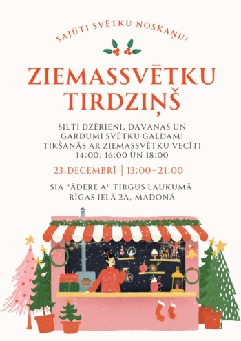23. decembris 19:00 - 20:00; Mētrienas tautas nams; MētrienaMētrienas tautas nama tautas mūzikas kopa “Ramana” ielūdz uz Ziemassvētku koncertu. Skanēs tautas dziesmu apdares, Ziemassvētku dziesmas, kokļu mūzika.