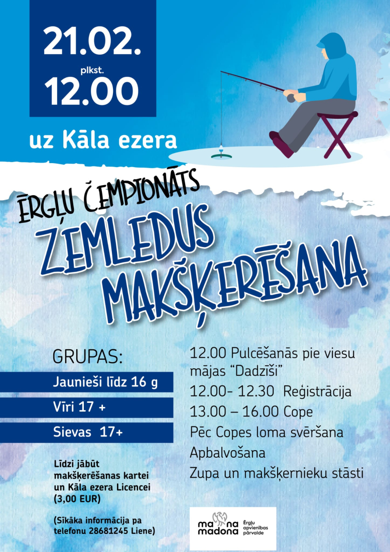 21.februārī - uz Kāla ezera (pulcēšanās pie viesu mājas "Dadzīši" - Ērgļu čempionāts zemledus makšķerēšanā.
