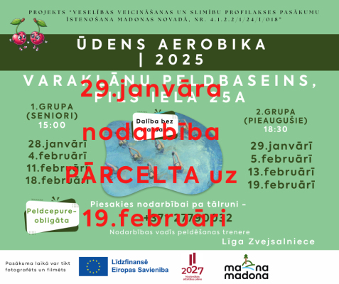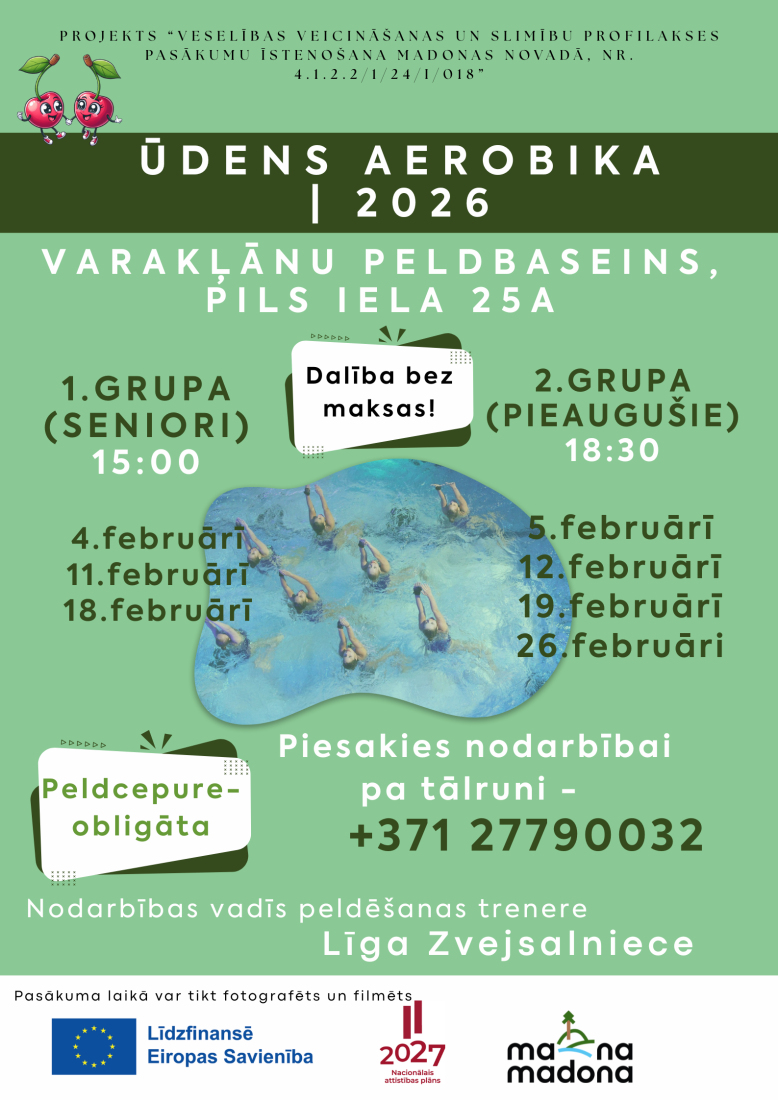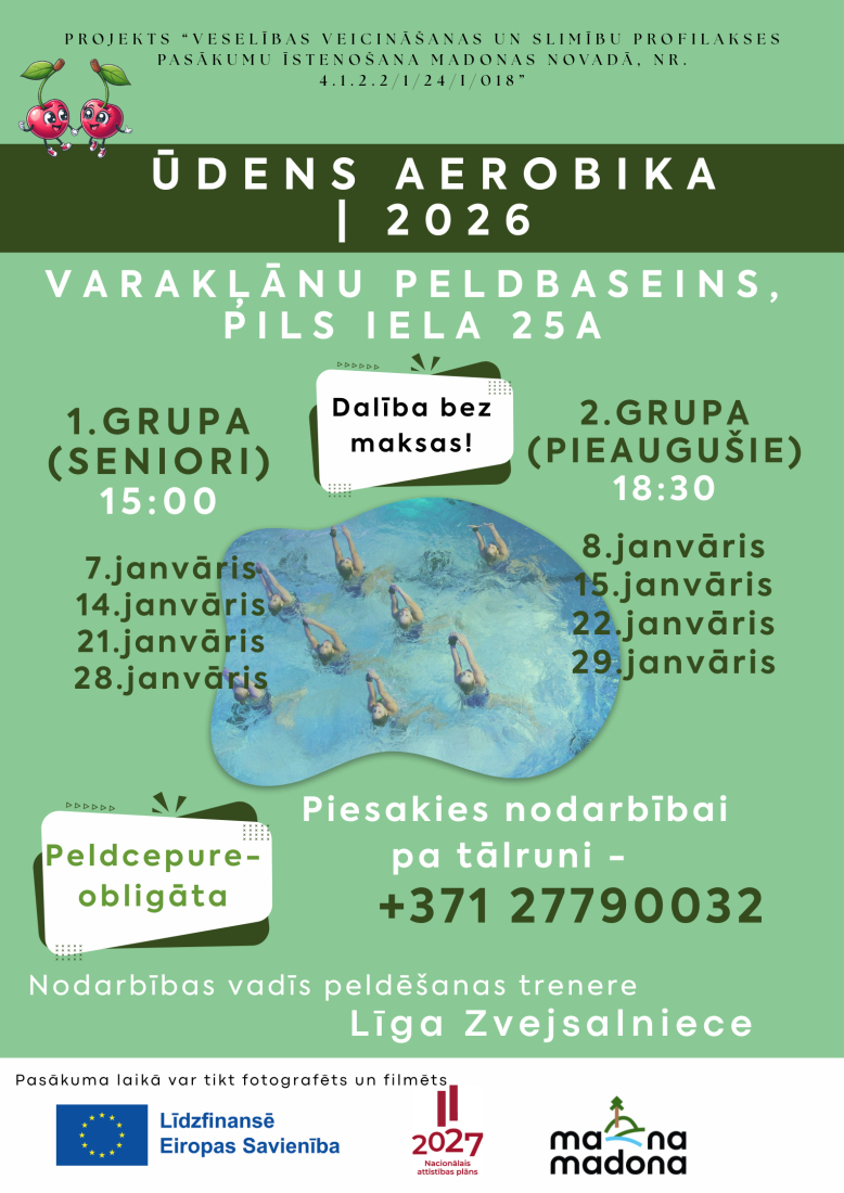 Ņemot vērā baseina izmēru, dalībnieku skaits grupā ir ierobežots, tāpēc iepriekšēja pieteikšanās ir obligāta pa tālruni 277900332.