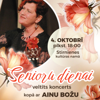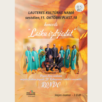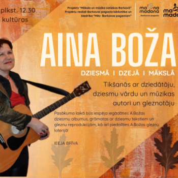 Koncerti ANCE KRAUZE | Sajūtu piezīmes 3. oktobris 19:00 - 20:15 Madona Maksas Koncerti Senioru dienai veltīts koncerts kopā ar Ainu Božu 4. oktobris 10:27 - 10:27 Stirniene Bezmaksas KoncertiTikšanās Tikšanās ar AINU BOŽU- dziesmā, dzejā, mākslā 4. oktobris 12:30 - 14:00 Barkava Bezmaksas AmatiermākslaGrāmatasKoncertiTikšanās Dzejas dienu pasākums - Sarmīte Radiņa kopā ar Sintiju Paegli, Ievu Hartmani un Praulienas amatierteātri “Tikai tā” 5. oktobris 15:00 - 17:30 Prauliena Bezmaksas Koncerti Santa Kasparsone koncertprogrammā “Likteņa dzīpariņš” 10. oktobris 19:00 - 20:30 Sarkaņi Maksas Koncerti Atvaras koncerts Cesvaines pilī 10. oktobris 19:00 - 20:30 Cesvaine Maksas AmatiermākslaKoncerti Lubānas folkloras kopai 40 11. oktobris 15:00 - 21:00 Lubāna Bezmaksas Koncerti Ainārs Bumbieris ar skaistākajām dziesmām rudenī 11. oktobris 16:00 - 17:30 Prauliena Maksas Koncerti Koncerts "Laiku izdziedāt" Lauterē! 11. oktobris 18:00 - 19:00 Arona Maksas Koncerti KLUSIE DĀRGUMI. No kamermūzikas līdz džezam. | Trio Elpo 12. oktobris 17:00 - 19:30 Madona Maksas IzstādesKoncerti TLMS “Ērgļi”- 50 un TMK “Pulgosnieši” – 30 jubilejas pasākums “TINU DZIESMU PA DZĪPARU” 18. oktobris 12:00 - 16:00 Ērgļi Bezmaksas Koncerti PIE AIVIEKSTES. Elgas Igenbergas un Jāņa Gavara dziesmu cikla pirmatskaņojums 18. oktobris 18:00 - 20:00 Madona Maksas AmatiermākslaKoncertiTikšanās Pasākuma “Rudens lapkritī…” koncerts “Ar Dziesmu pa Dzīvi” 26. oktobris 13:00 - 18:00 Ērgļi Bezmaksas Koncerti SKAN ELPAS STAROJUMS | Latvijas pūtēju orķestru Lielkoncerts 1. novembris 17:00 - 19:00 Madona Maksas IzrādesKoncerti RIČIJS RŪ | PILSĒTĀ 8. novembris 15:00 - 16:30 Madona Maksas Koncerti Samanta Tīna akustiskajā koncertā "Vēstule Tev - Nepateiktais" 14. novembris 19:00 - 21:00 Madona Maksas Koncerti KONCERTS ATCELTS! KAUTKAILI elektroakustiskā tūre “Kur klusums zied” 27. novembris 19:00 - 20:30 Madona Maksas Koncerti AG TRIO UN AIJA VĪTOLIŅA | Ziemassvētku koncerts "Kā circenītis aizkrāsnē" 14. decembris 16:00 - 17:30 Madona Maksas Koncerti Priecīgākie Ziemassvētki kopā ar grupu BARITONI! 20. decembris 18:00 - 19:30 Madona Maksas Koncerti Koncerts “Ar dziesmu apkārt pasaulei” | Anna Dribas, Agris Ričs 7. februāris 18:00 - 19:30 Madona Maksas