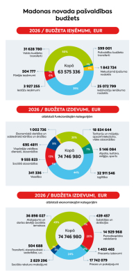 Madonas novada pašvaldības dome ir pieņēmusi 2026. gada budžetu, kas ir pirmais kopīgais finanšu plāns pēc apvienošanās ar Varakļānu novadu aizvadītajā vasarā. Šī gada prioritātes ir - mērķtiecīgas investīcijas attīstības projektos, plaša sociālā atbalsta paka iedzīvotājiem, dažādi pasākumi un aktivitātes visā plašajā novada teritorijā.