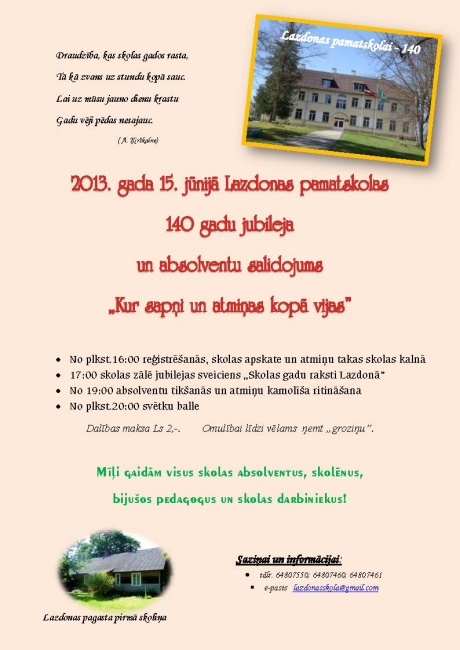 Lazdonas pamatskolas 140 gadu jubileja un absolventu salidojums
