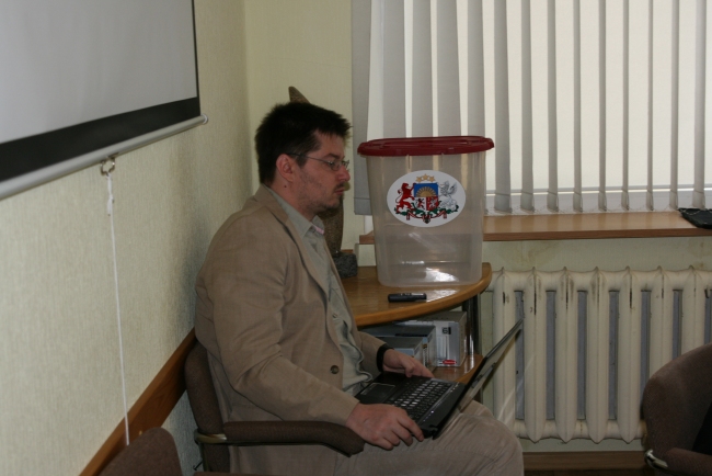 Saskaņā ar likumu pirmo sēdi sasauca un vadīja vēlēšanu komisijas priekšsēdētāja Ilva Šulmane. Tika izvirzīti trīs priekšsēdētāja amata kandidāti – nacionālās apvienības deputāte Jeuženija Adamoviča izvirzīja ZZS saraksta līderi Agri Lungeviču, Tautas kontroles/ sociāldemokrātu deputāts Andris Trečaks izvirzīja deputātu Valentīnu Rakstiņu no tā paša saraksta, bet ZZS saraksta deputāts Rihards Saulītis izvirzīja līdzšinējo priekšsēdētāju Andreju Ceļapīteru no Vienotības. Agris Lungevičs startēt uz domes priekšsēdētaja amatu atteicās.