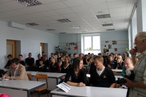 A.Pabriks neformālā gaisotnē runāja par politiku Latvijā un ārzemēs. Viņš aicināja jauniešus vairāk interesēties par politiku, kā arī pašiem tajā iesaistīties. Ministrs laipni atbildēja uz jauniešu uzdotajiem jautājumiem gan par viņa sekmēm vidusskolā, gan nopietnākām tēmām, piemēram, pilsoņu karu Sīrijā.