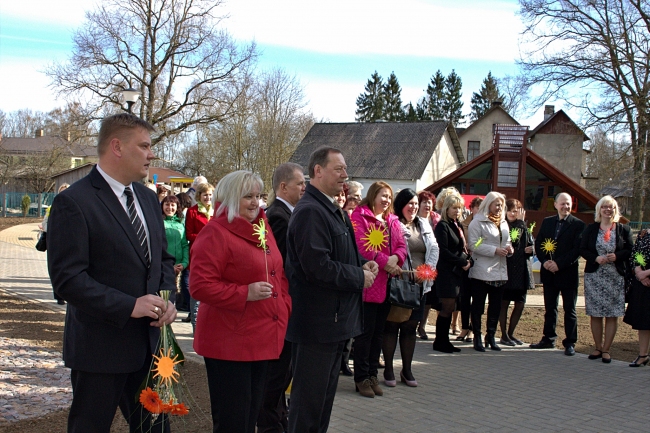 Pēcpusdienā jaunājā korpusa zālē notika atklāšanas pasākums. Kolektīva audzinātājas klātesošajiem stāstīja par ilgo un garu korpusa tapšanas laiku- būvniecība vairākkārt apturēta, sākta no jauna, tā pagājuši vairāk kā 5 gadi. Kā atzīst "Saulītes" vadītāja Daiga Elga Ābola, tad tas bijis liels pārbaudījums visiem gan kolektīvam, gan vecākiem, gan arī bērniem. Taču prieks, ka beidzot telpas ir gatavas.