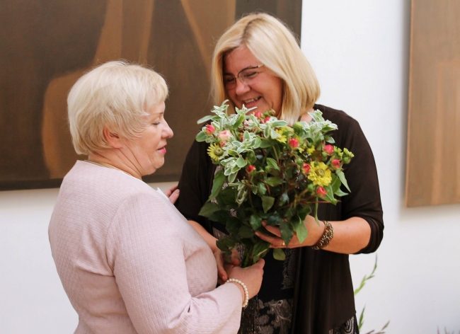 Bija pulcējušies kādreizējie kolēģi, Kultūras ministrijas un kaimiņu muzeju pārstāvji, bija daudz mīļu apsveikumu, ziedu, spontānu dziesmu.