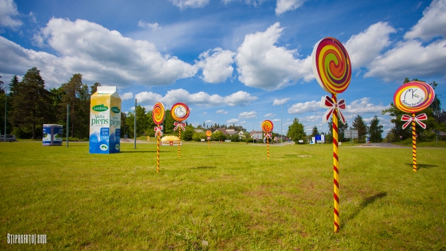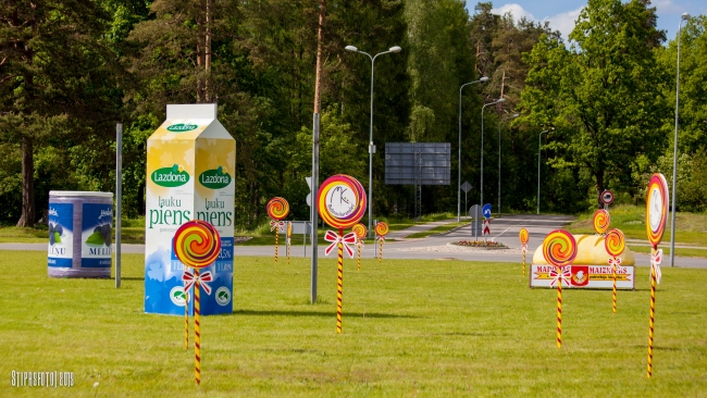 Pilsētu rotā 3 metrus augstas “Lazdonas piensaimnieka” piena un kefīra pakas, milzu “Madonas karameles” , aptuveni 2 metrus augstas “Baudalus” krūkas, "Jāņkalnu" ievārījumu burciņas un brangs “Madonas maiznieka” klaips. Kā ierasts, dekorācijas novietotas pilsētas rotācijas lokos.