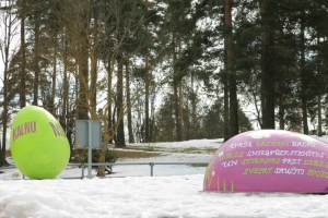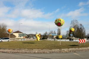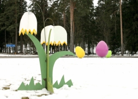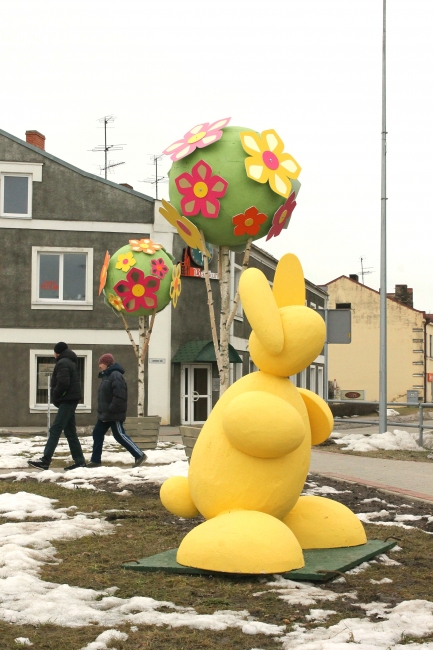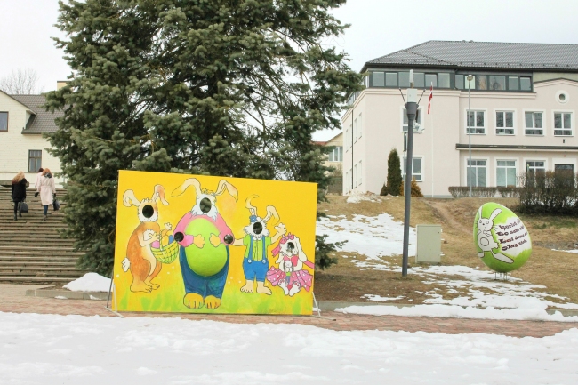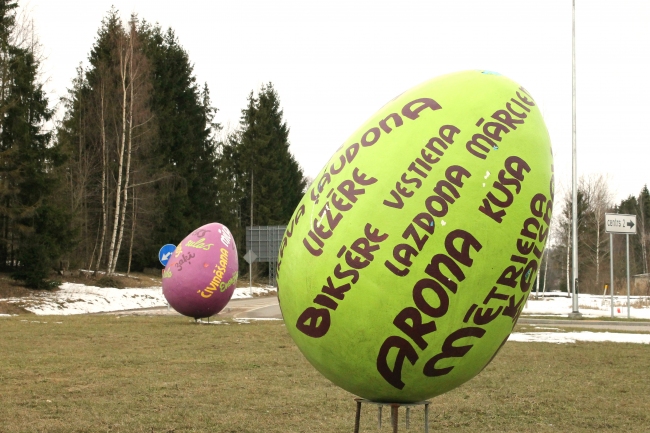 Visas jaunās dekorācijas pamatā veidotas no putuplasta. Tā apstrādē un formu izveidē nepieciešamas īpašas iemaņas, tādēļ darbs tika uzticēts Imantam Spridzānam un Kārlim Bandeniekam. Stilizētā koka ziedošos akcentus palīdzēja sagatavot dārzniece Gita Lutce ar īpašumu uzturēšanas komandu. Laika zobs nebija pasaudzējis Lieldienu olas, kuras pagājušajā gadā rotāja zīmējumi un asociāciju teksti ar svētku laiku. Krāsojums sācis lupt nost, tāpēc uzturēšanas dienestam nācies tās pārkrāsot.