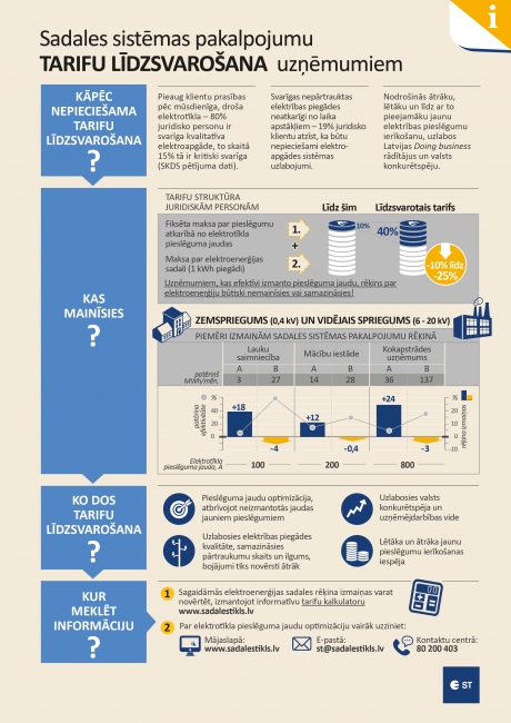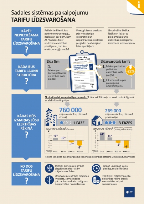 Līdzsvarotie sadales tarifi lielākajai daļai mājsaimniecību par 22% samazinās elektroenerģijas piegādes maksu, vienlaikus ieviešot fiksētu maksu par pieslēguma nodrošināšanu neatkarīgi no elektroenerģijas patēriņa apjoma. Aptuveni 700 tūkstošiem mājsaimniecību šādas izmaiņas elektrības gala rēķinu būtiski neietekmēs vai tas pat samazināsies. Savukārt juridiskajiem klientiem sadales tarifu struktūra tiks līdzsvarota, samazinot elektroenerģijas piegādes maksu un palielinot no pieslēguma jaudas atkarīgo fiksētās maksas īpatsvaru. Rezultātā juridiskajām personām, kas efektīvi izmanto pieslēguma jaudu, kopējais rēķins par elektroenerģiju nemainīsies vai samazināsies.