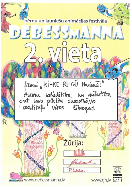 Par filmu, kura tapusi par godu Madonas svētkiem, iegūta 2. vieta. Žūrijas komisija par “Ki-Ke-R-Gū! Madonā ” raksta: “ Autoru saliedētība un mīlestība par savu pilsētu caurstrāvo skatītāju visos līmeņos”. Filmiņu var noskatīties: https://www.youtube.com/watch?v=bE7G-EwmF-w