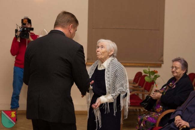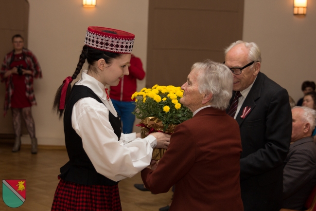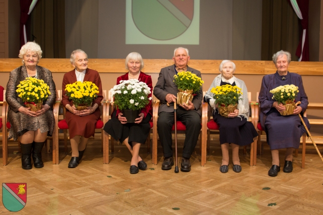 Ar īpaši aizkustinošu brīdi tika sumināti mūsu seniori - Madonas vienaudži. Prieks, ka novada uzņēmēji bija sarūpējuši spēka dāvanu - uz "Latvāņu" galdniecībā speciāli šim nolūkam darinātiem virtuves dēlīšiem savietojās "Madonas maiznieka" svaigi cepts Lāčplēša maizes kukulis, aizdaram - "Lazdonas Piensaimnieka" novada piensaimnieku produkcija, "Jāņkalnu" dzērvenes vitamīniem, "55mārīšu" veselības tēja, savukārt "Madonas karameles" - dzīves saldumam, bet "Madonas alus" lustīgam svētku noskaņojumam.