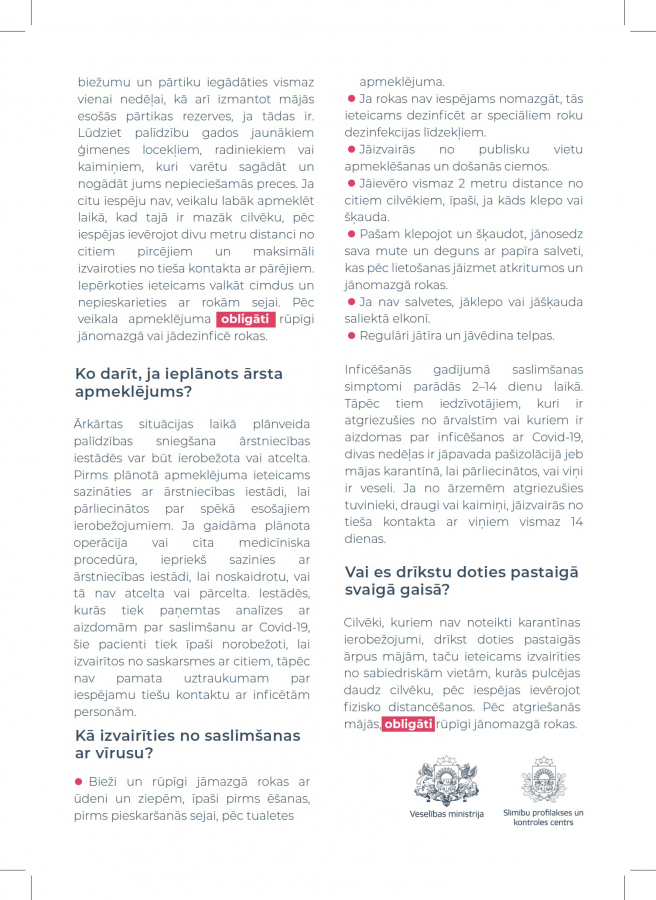 Šo vienkāršo piesardzības paņēmienu ievērošana un paradumu maiņa ir būtisks solis, lai ierobežotu COVID-19 vīrusa izplatību!