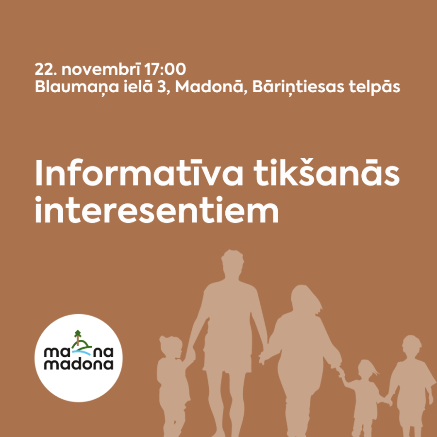 Madonas novada bāriņtiesa aicina novada iedzīvotājus un visus interesentus, kuri apsver iespējas uzņemt savā ģimenē bez vecāku gādības palikušos bērnus, uz tikšanos š.g. 22.novembrī plkst. 17.00 bāriņtiesas telpās Blaumaņa ielā 3, Madonā.