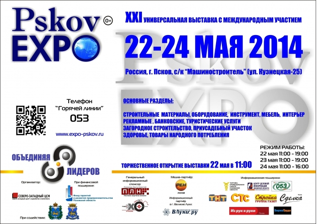 Latvijas - Igaunijas - Krievijas starpvalstu projekta ietvaros Krievijas partneri aicina apmeklēt Izstādi "Pskov expo 2014", kas norisināsies Pleskavā no 22. līdz 24.maijam. Dalība izstādē, piesakoties projekta Ietvaros, bez maksas.