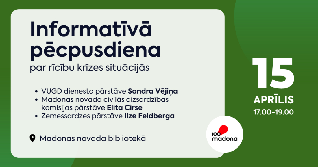 Informatīvā pēcpusdiena notiks 15. aprīlī plkst. 17.00 Madonas novada bibliotēkā.