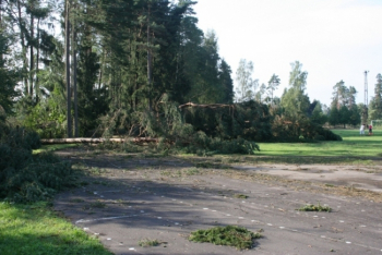 » Vētras postījumi un sakopšanas darbi Madonas stadionā