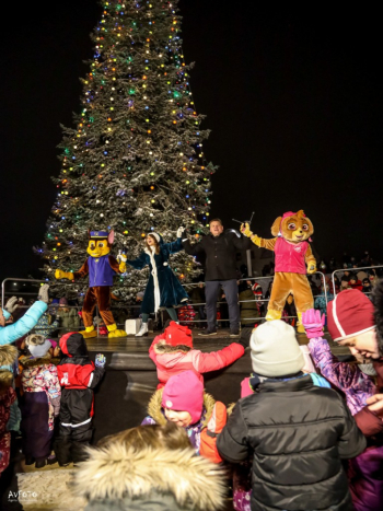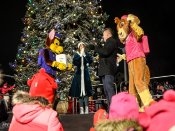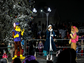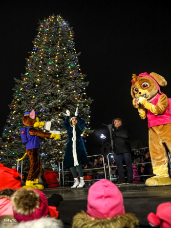 Vēlāk pasākumā gan bērniem, gan vecākiem ar dziesmām, spēlēm un rotaļām, piedaloties Sniegbaltītei, Cheizam un Skajam no “Ķepu patruļas” tika iedegta egle Madonā, Saieta laukumā.