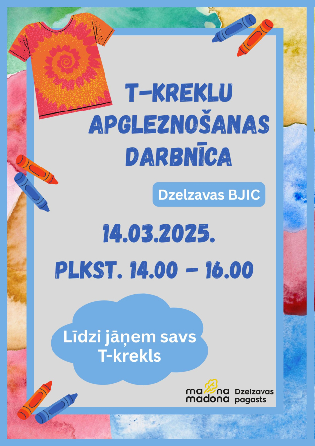 Līdzi jāņem savs t-krekls. Var būt gan gaišas, gan tumšas krāsas t-krekls (vislabāk, ja nav ar apdruku).