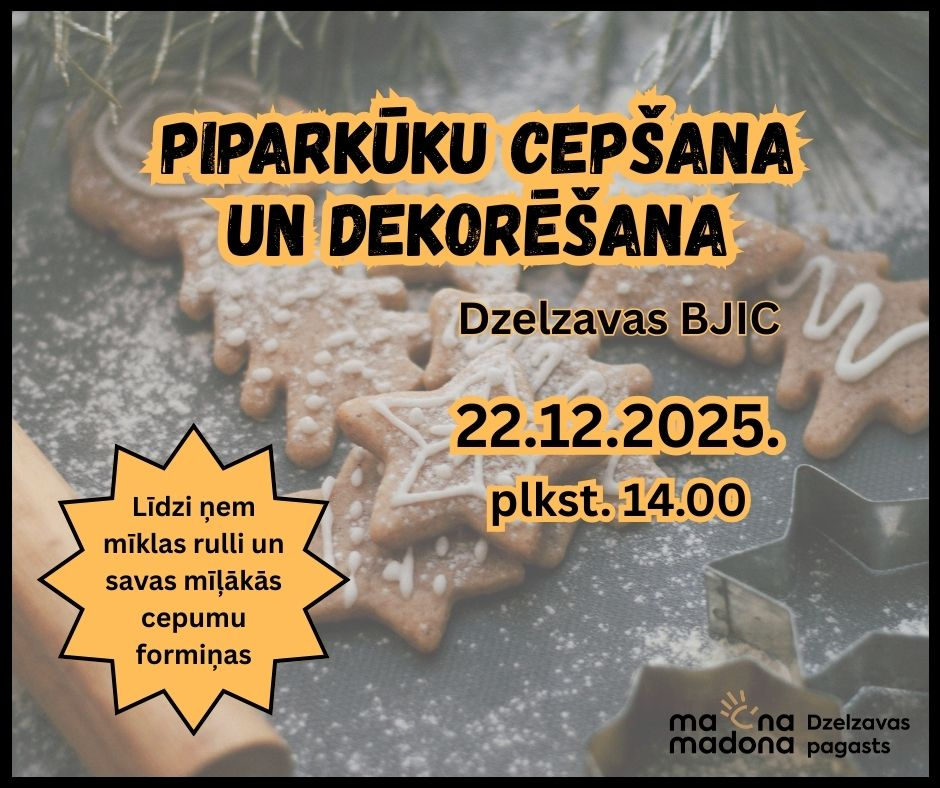 22. decembrī plkst. 14.00 Dzelzavas pagasta bērnu un jauniešu iniciatīvu centrā norisināsies piparkūku cepšanas un dekorēšanas darbnīca.