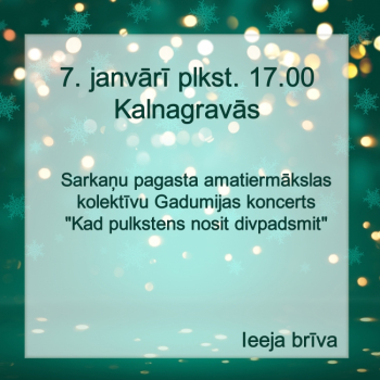 Latvija ir zeme ar senām folkloras tradīcijām, kas tiek koptas un turētas cieņā arī šodien. Tāpēc mēs kalsnavieši vēlamies, veidot pagastā folkloras kopu. Pirmā folkloras kopas tikšanās! Tiek aicināti visi, kuri spēlē kādu mūzikas instrumentu, dzied, vai vēlas dziedāt, visiem kam tuvas latviskās tradīcijas.