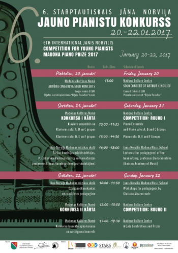 6.Starptautisko Jāņa Norviļa jauno pianistu konkursu organizē Vidzemes jauno talantu atbalsta fonds un Jāņa Norviļa Madonas mūzikas skola. Konkurss veltīts tautas melodiju intonatīvās savdabības popularizēšanai akadēmiskās klaviermūzikas žanros. Tas notiks no 2017.gada 20.janvāra līdz 22.janvārim Madonas pilsētas kultūras namā. Konkursa instruments - Steinway D flīģelis. Esat laipni aicināti!...