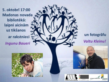 5.oktobrī pulksten 17:00 aicinām uz tikšanos Madonas novada bibliotēkā. Tas būs otrais sarunu vakars, realizējot Madonas novada bibliotēkas projektu „Sarunu vakari Madonas novada bibliotēkā: Mēs tiekamies piektajā piecos” - atbalsts gūts projektu konkursā, kuru izsludināja un administrēja Vidzemes plānošanas reģiona „Latvijas valsts mežu” atbalstītā Vidzemes kultūras programmas 2015”. Stāstu laiks kļuvis populārs daudzās kultūras jomās, realizējot šo projektu: Sarunu vakari bibliotēkā - „Mēs tiekamies piektajā piecos!" - vēlamies noorganizēt mūsu reģiona iedzīvotājiem iespēju trīs vakarus (5.augustā, 5.oktobrī, 5.novembrī pulksten 17:00) pavadīt kopā ar interesantiem, radošiem, tepat Latvijā, un nu jau arī ārpus tās, atpazīstamiem cilvēkiem, kuri pārstāv dažādas kultūras jomas, ir 2015. gada jubilāri - 55 gadnieki, vienaudži, kuriem ir katram savs, bet arī kopīgs – šīs paaudzes stāsts. Kāpēc 55? Agrāk tā bija augstākā vērtējuma atzīme, spēkā ir teiciens: „Dzīvo uz pieci!”, vēl: – divas rokas - katrā pieci pirksti - sadarbībā veicam lielas lietas, satiekoties - sarokojamies, pieskaramies otram, dodam un gūstam.