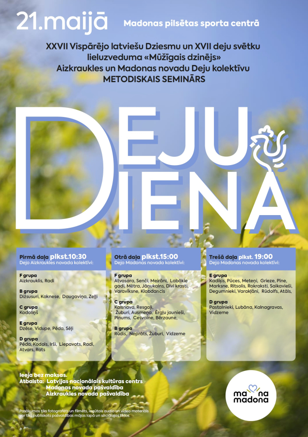 MADONĀ skatītājus un atbalstītājus aicinām uz līdzijušanu 21. maijā. Piedalīsies gan Madonas novada, gan arī Aizkraukles novada deju kolektīvi.