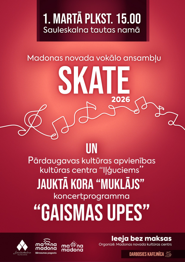 Esiet aicināti 1. martā plkst. 15.00 uz Sauleskalna tautas namu, kur izskanēs Madonas novada vokālo ansambļu koncerts - skate.