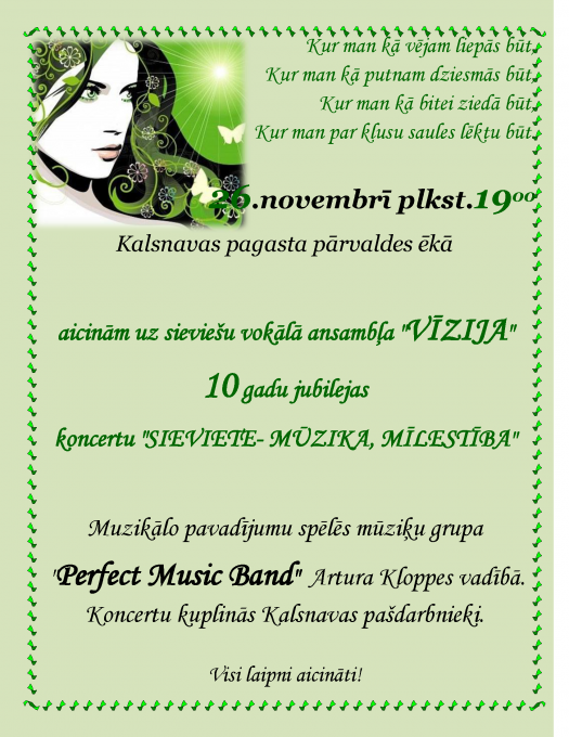 Sieviešu vokālā ansambļa ''Vīzija'' 10 gadu jubilejas koncerts