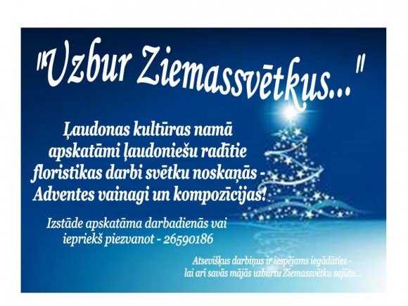 Līdz ar pirmās sveces aizdegšanu Adventes vainagā sākas brīnumainais Ziemassvētku gaidīšanas laiks - ikviens aicināts apmeklēt izstādi "Uzbur Ziemassvētkus" - kurā aplūkojami floristikas darbi,kas radīti svētku noskaņās!
