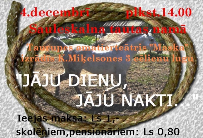 Sauleskalna tautas namā 4. decembrī plkst. 14:00