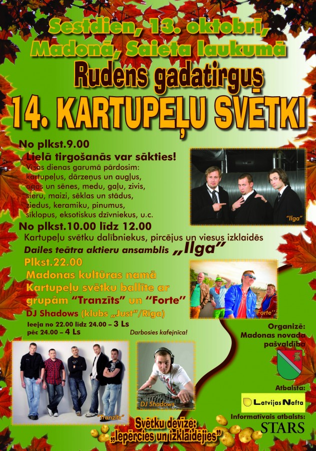 http://www.estars.lv/raksti/2/18239 Kartupeļu svētki Madonā – 13. oktobrī. Autore: ŽEŅA KOZLOVA. Plašāk lasiet laikrakstā STARS 14.09.2012.