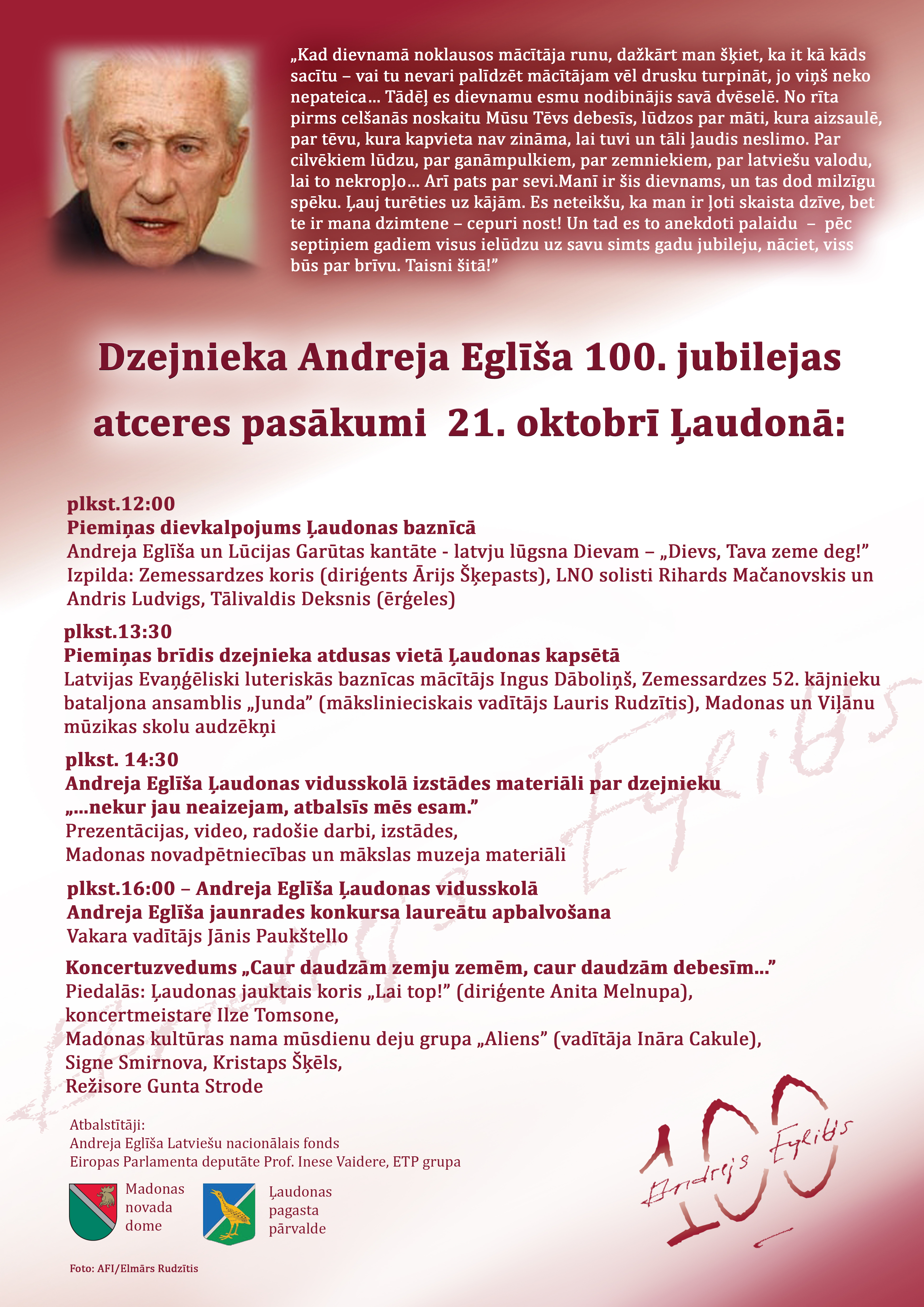 Andreja Eglīša Ļaudonas vidusskolā izstādes materiāli par dzejnieku „...nekur jau neaizejam, atbalsīs mēs esam.”