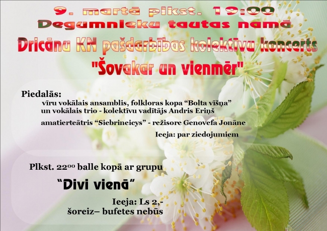 9.martā plkst 19:00 Degumnieku TN