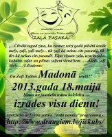 20.00 Madonas muzejā visiem Muzeja nakts apmeklētājiem un Teātra svētku dalībniekiem Madonas KN jauniešu dramatiskais kolektīva izrāde M.Kvite „Koki kā cilvēki”.