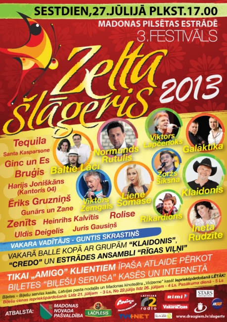 Atbalsta: Madonas novada pašvaldība, Lāčplēša alus, Amigo, Latvijas radio 2, Vakara Ziņas, draugiem.lv, pērkamkopā.lv, Latvijas šlāgerkanāls.
